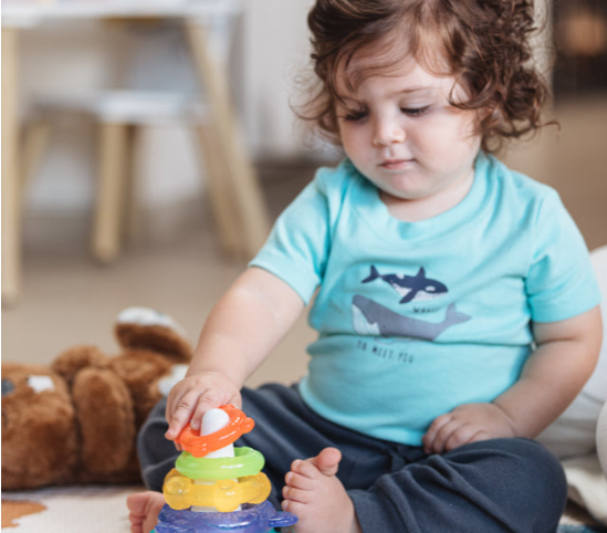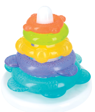 Teething is smooth sailing with these fun, stackable IcyBite Teethers that use purICE gel to help soothe tender gums. The gel stays cooler longer than water-filled teethers, providing extended relief for sensitive gums. Pop the IcyBite Teethers in the fridge to chill out, then let your little one nibble, teethe, and stack their way to relief. For additional soothing, the teether’s multi-textured surfaces massage and stimulate baby’s sore gums. The varied sizes and ring design allow little hands to find the best fit for their hand and helps support tactile development.