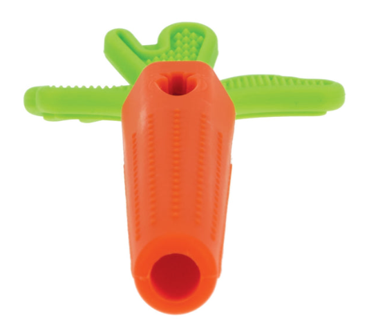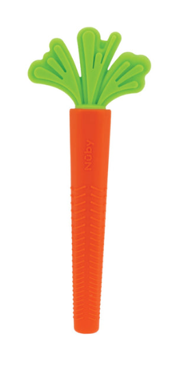 Nuby’s Carrot Tube Teether helps make teething easier. The multi-textured surfaces encourage tactile exploration, and massage and stimulate baby’s sore gums as they teethe. The Carrot Tube Teether is made of soft, flexible silicone so it provides just the right relief for fussy babies. The tube design helps little ones cut molars and is sized to be easy for little hands to grasp and hold. For parents’ peace of mind, Nuby’s Carrot Tube Teether is made from 100% super soft silicone.