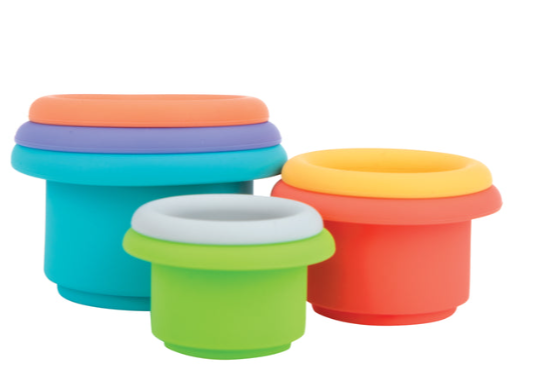 Make the most of playtime with Nuby’s Silicone Stacking Cups. Designed to help encourage cognitive development, the Silicone Stacking Cups help develop children’s fine motor skills, including developing the hand-eye coordination that will eventually help with future tasks like self-feeding. With engaging colors and various sized pieces, baby will hone color recognition and size sequencing skills while exercising their creativity. As little ones sit and play, the stacking toys also help build core stability. With children’s safety in mind, Nuby’s Silicone Stacking Cups are made from 100% silicone that is dishwasher safe, so cleanup is easy. For even more fun, Nuby’s Silicone Stacking Cups can be used during bath time, too!